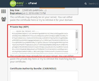 - In case you generate the private key in cPanel, it will be automatically added to the Private Key (KEY) text box. When activating a pre-existing SSL certificate, paste the certificate’s private key here and don’t forget to include the beginning and ending lines.